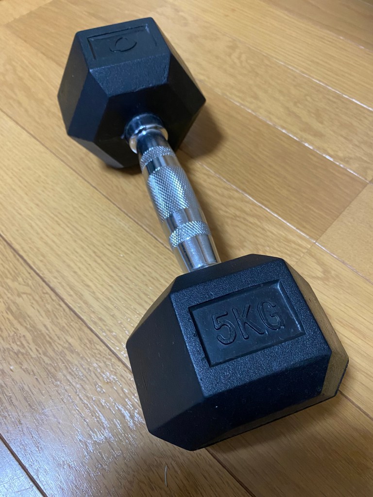 最初のころ、5㎏のダンベルを1つ購入して、トレーニングを開始しました。